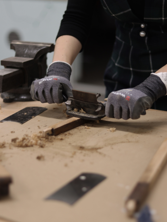 W pracowni pod okiem fachowca oprócz projektowania i tworzenia zupełnie nowych form (mebli, oświetlenia i innych), zajmujemy się odnawianiem, naprawianiem i renowacją rzeczy wyprodukowanych wiele lat temu, nabywając przy tym praktyczną wiedzę na temat tradycyjnych technik ręcznych stosowanych w tych dziedzinach – zachęca prowadzący zajęcia Paweł Machomet.
