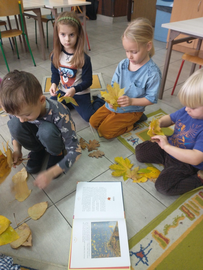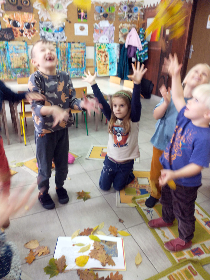 Co jesienią spada w dużej ilości? „Liście” – to kolejna historia z serii opowiadań, która była inspiracją do zabaw z liśćmi, a także do stworzenia kolorowych dzieł z liści.
