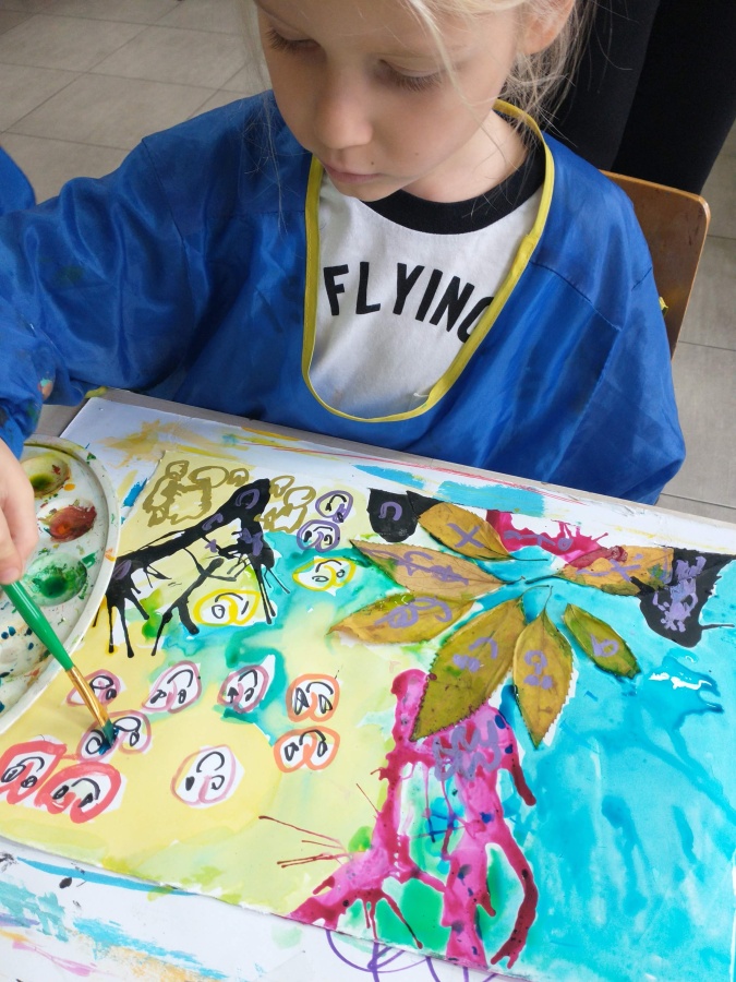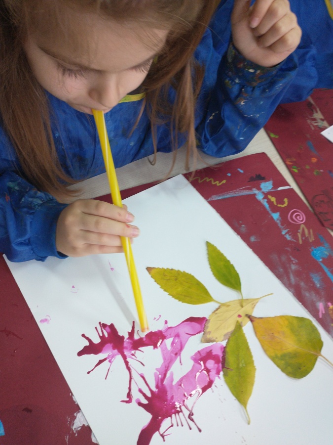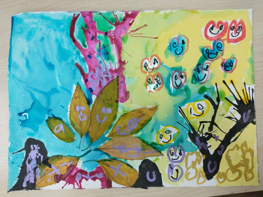 Najpierw było więc rzucanie, szeleszczenie, głaskanie liści, a potem rozdmuchiwanie kleksów, dorysowywanie i malowanie i…. Jakie liściaste stworzenia powstały tego się nie da opisać 😉 Pełne kolorów i uśmiechów nie tylko jesiennych! 🙂