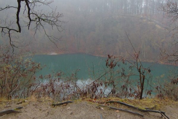 7 grudnia spotkaliśmy się na przystanku autobusowym przy jeziorze Szmaragdowym. Było zimno i może dlatego chętnych do sobotniej wędrówki było mniej. Ruszyliśmy niebieskim szlakiem w stronę polany Psie Pole. Podziwialiśmy z góry panoramę jeziora, które o tej porze było ciemnozielone.