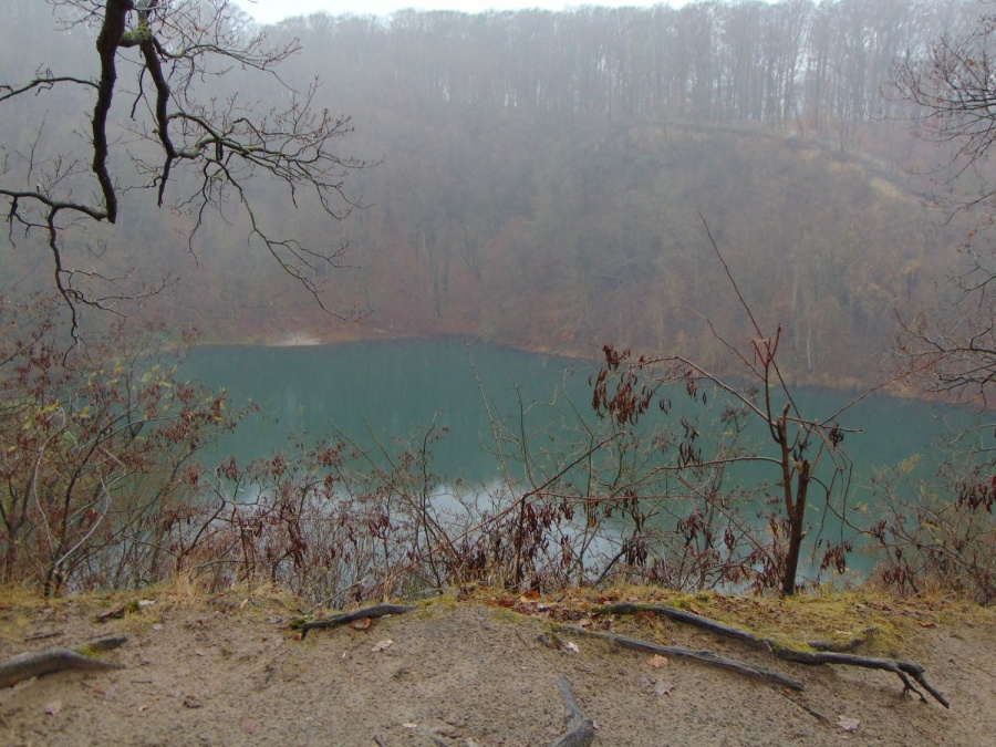 7 grudnia spotkaliśmy się na przystanku autobusowym przy jeziorze Szmaragdowym. Było zimno i może dlatego chętnych do sobotniej wędrówki było mniej. Ruszyliśmy niebieskim szlakiem w stronę polany Psie Pole. Podziwialiśmy z góry panoramę jeziora, które o tej porze było ciemnozielone.