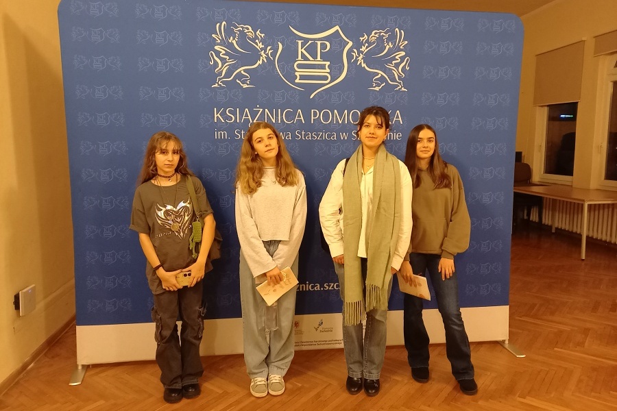 Uczestniczki Pracowni Dziennikarskiej w składzie: Maja Szczęsna, Klara Stasiowska, Alicja Gałecka i Pola Tutka odwiedziły Książnicę Pomorską w Szczecinie, gdzie mogły obejrzeć wystawę, a także wzięły udział w warsztatach pod hasłem: Świąteczna Mapa Huncwotów Książnicy.