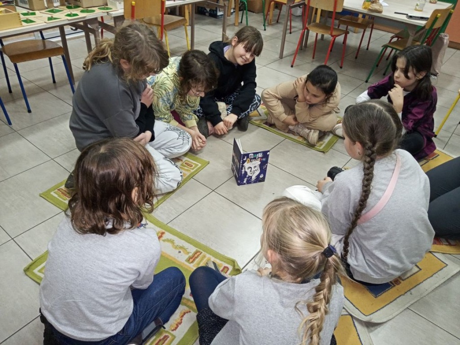 W tym roku szkolnym, w trakcie zajęć czytamy książkę „Bajki filozoficzne. Opowieści mędrca Sofiosa” – Michela Piquemala w tłumaczeniu Marii Braunstein i Michała Krasickiego z ilustracjami Agnieszki Malmon.