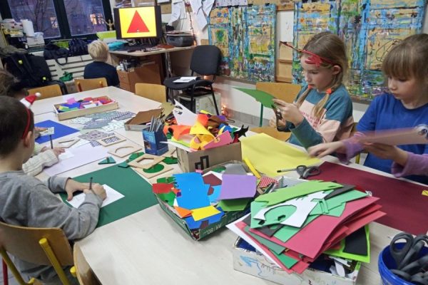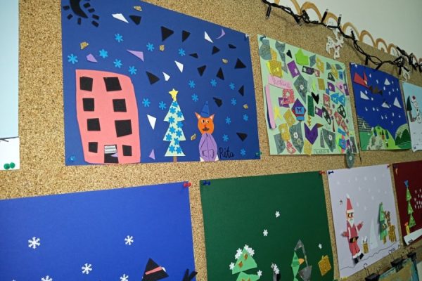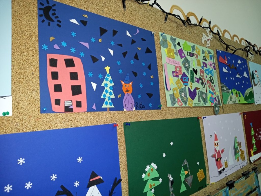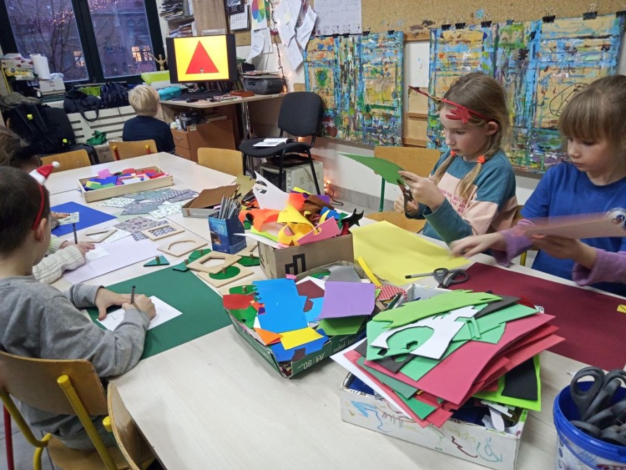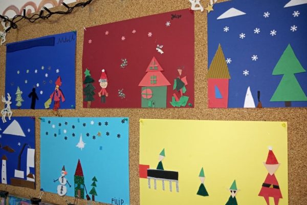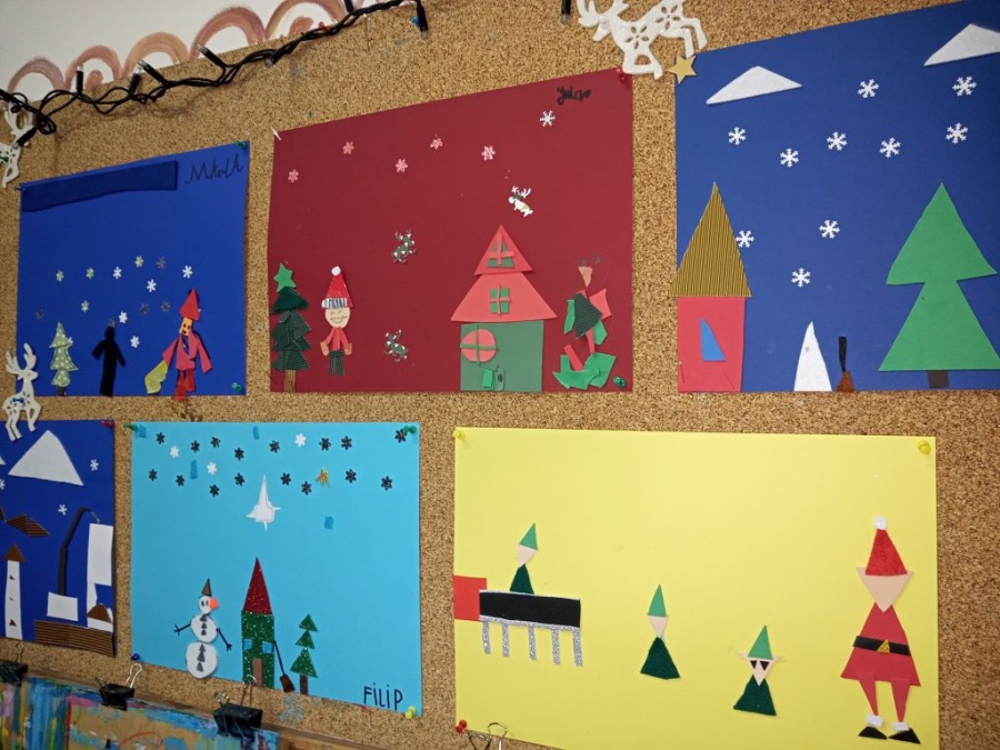 Trójkąt może mieć także swoje opowieści w plastyce. „Trójkątnie” zainspirowane dzieci wykorzystały swoją wiedzę w zimowych pracach plastycznych. Na pewno doceni je Mikołaj…