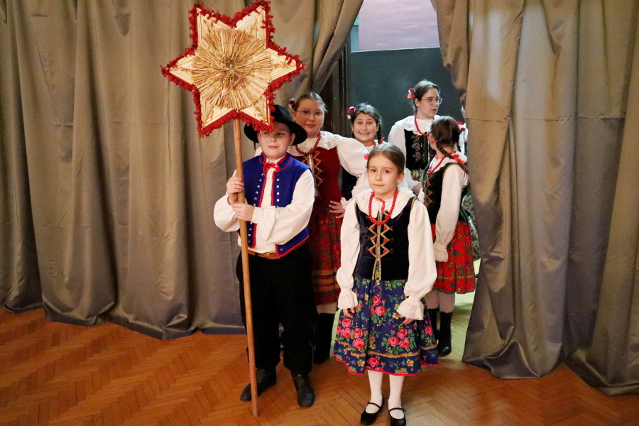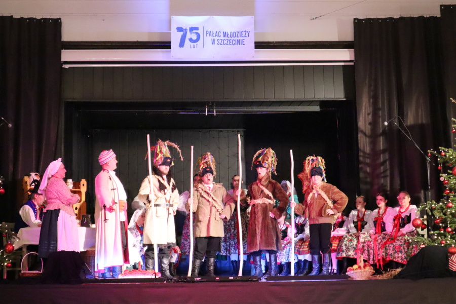 Na scenie mogliśmy obejrzeć ludowe obrzędy związane z noworocznym kolędowaniem w regionie Pogórza Sądeckiego. Wszystko w scenerii wiejskiej izby z Gospodynią z Gospodarzem przy stole!
