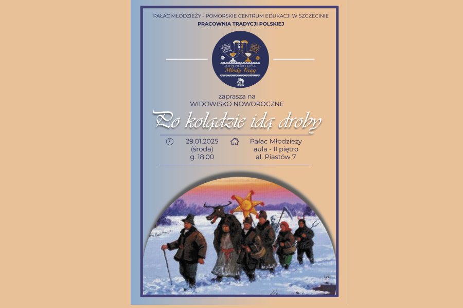 Zespół Pieśni i Tańca „Młody Krąg” zaprasza serdecznie na widowisko noworoczne „Hej! Po kolądzie idą droby”, prezentujące tradycje i zwyczaje kolędnicze w regionie Pogórza Sądeckiego.