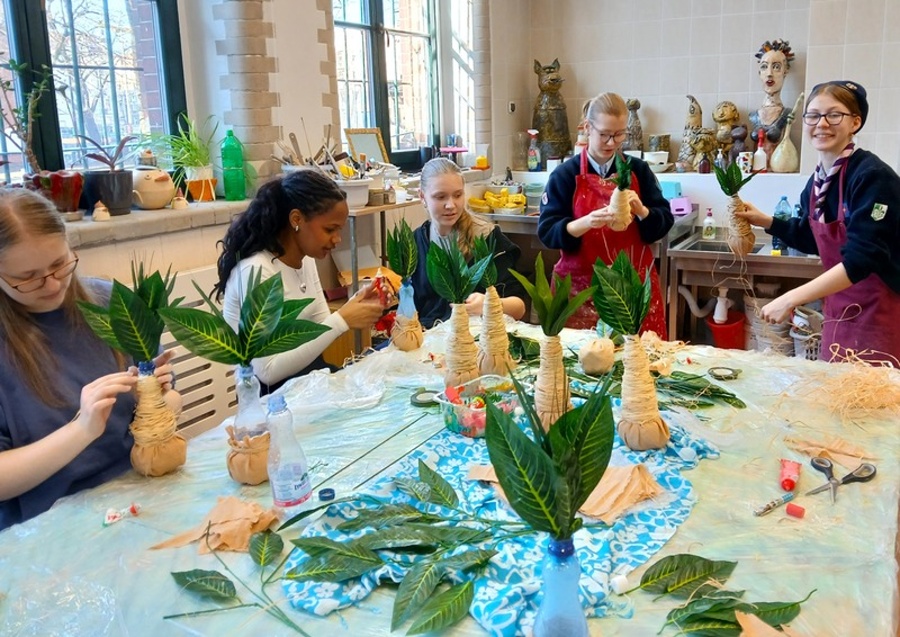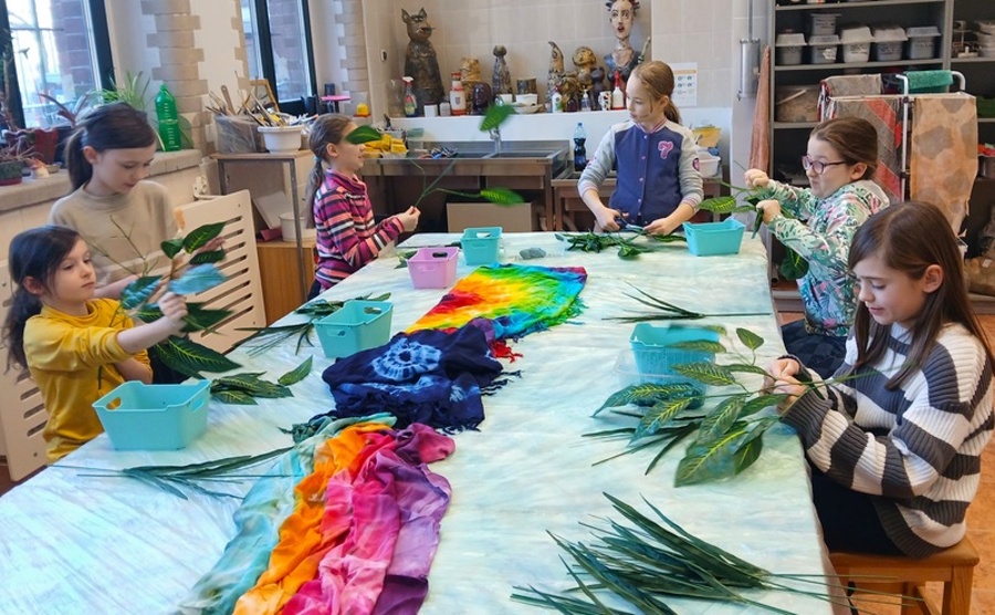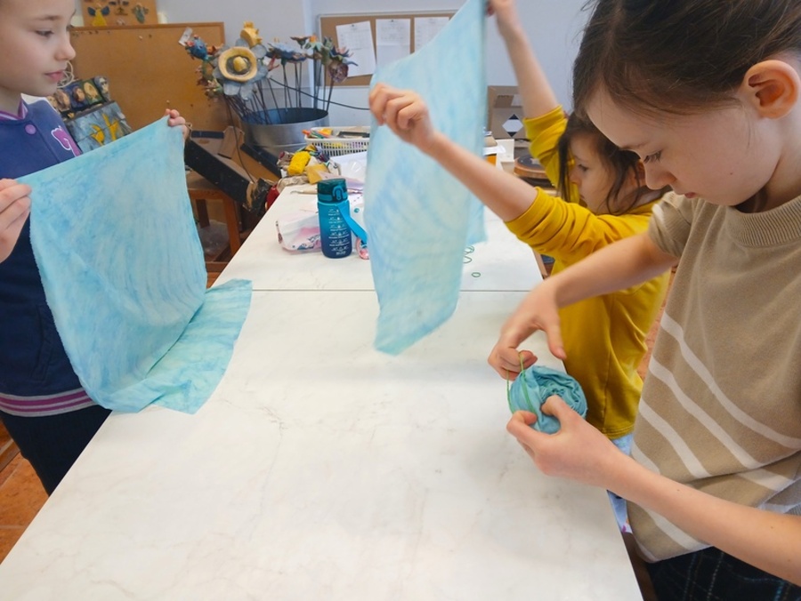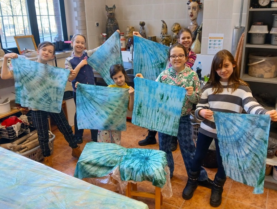 Dziewczęta z Etniki barwiły tkaniny metodą TIE DYE, które staną się elementem wystawy w sali 202. Grupa Etna wykonała grzechotki do tańca hawajskiego hula. Inspiracją do ich tworzenia były wakacyjne warsztaty prowadzone przez Małgorzatę Szokalską Summer Hula Camp ,,Little Hawai’i” zorganizowane przez Stowarzyszenie KE Ola dla zdrowia i rozwoju człowieka, w których każdego