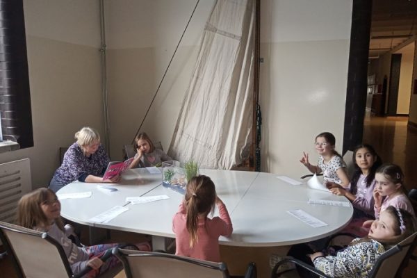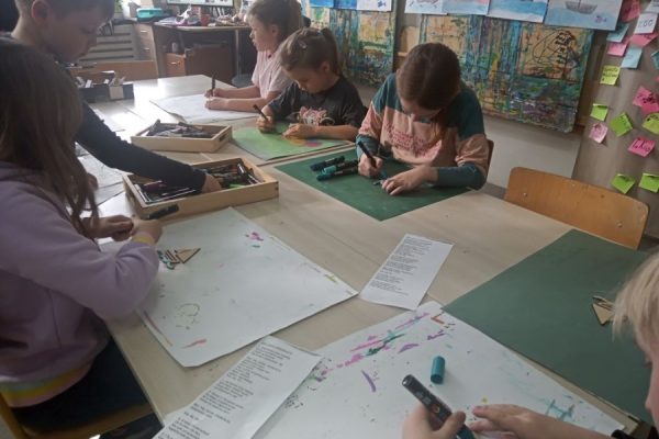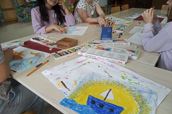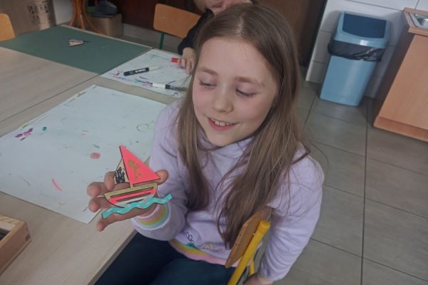 Baśń zainspirowała działania plastyczne. Jednak tym razem postanowiliśmy rozszerzyć swoją wiedzę u ekspertów, którzy działają w Pałacowej Pracowni Edukacji Morskiej. Jedna z grup Pracowni miała okazję poznać kapitana Jerzego Szwocha oraz kilku Uczestników PEM. Olga Kawiec zadawała w naszym imieniu wiele dociekliwych pytań. Dowiedziałyśmy się o poczuciu wolności jakiej można doświadczyć podczas rejsu.