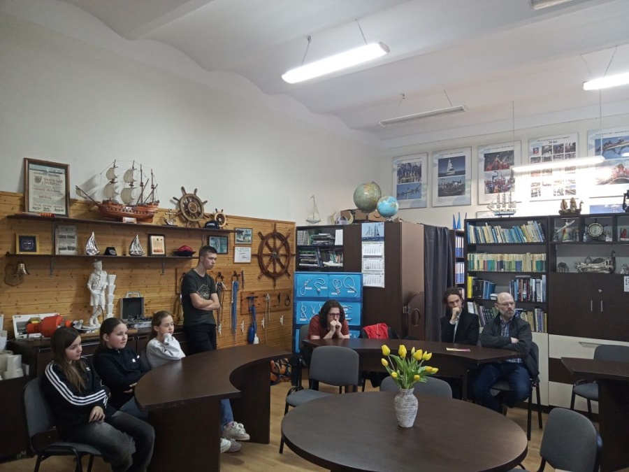 Serdecznie dziękujemy Panu kapitanowi Jerzemu Szwochowi oraz Uczestnikom Pracowni Edukacji Morskiej za poświęcony czas i wspaniałą rozmowę.