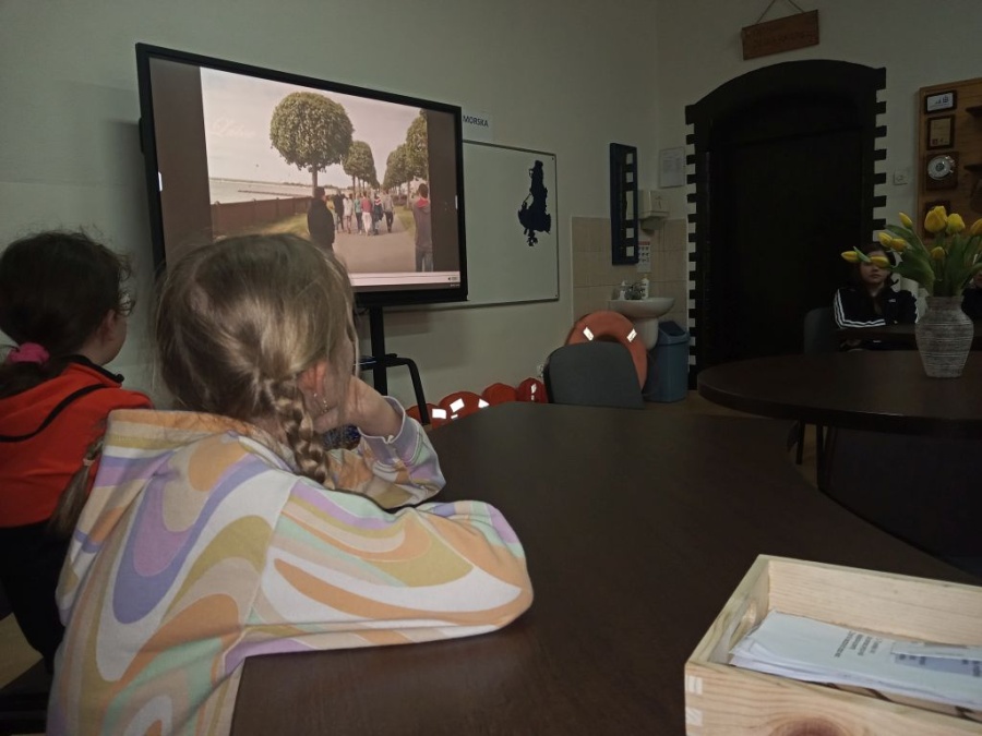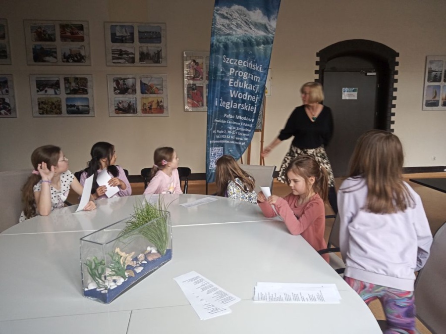 Dziewczynki usłyszały jeszcze wiele zajmujących historii związanych z morzem. Na zakończenie Pan Jerzy pokazał nam film dokumentujący rejs jachtem „Dar Szczecina” w 2012 roku. Jego załoga zwyciężyła regaty The Tall Ships Races. Podczas rejsu statek odwiedził 10 krajów i przepłynął 6000 Mm. Mimo wielkich wiatrów młodzież płynąca nim ani razu nie zwątpiła, że uda się ukończyć tę podróż.