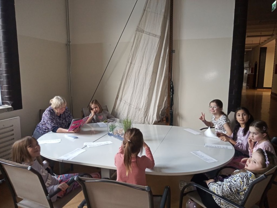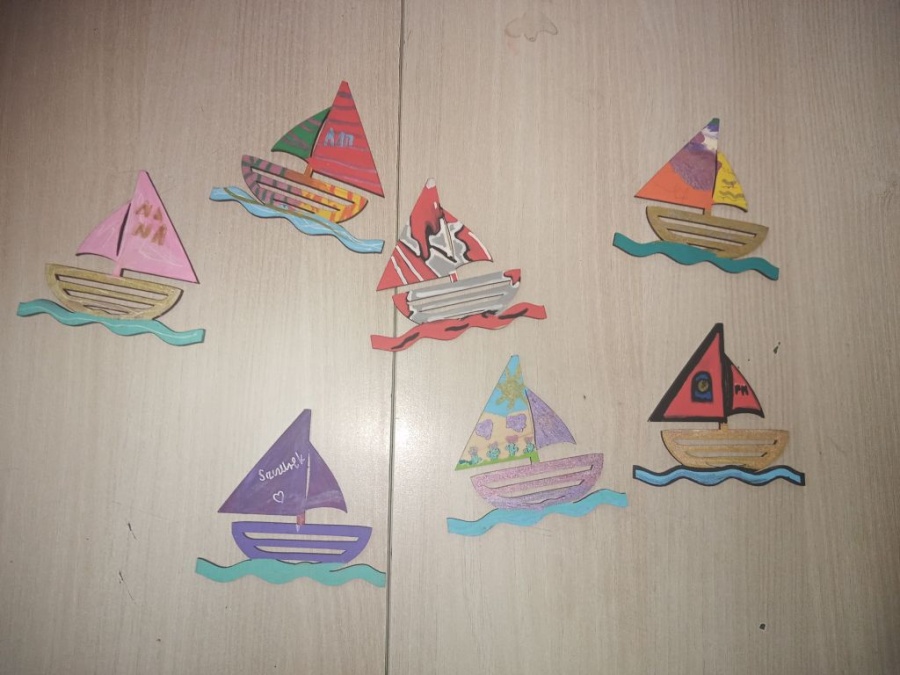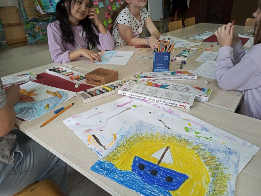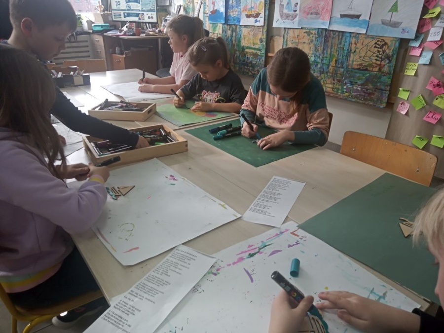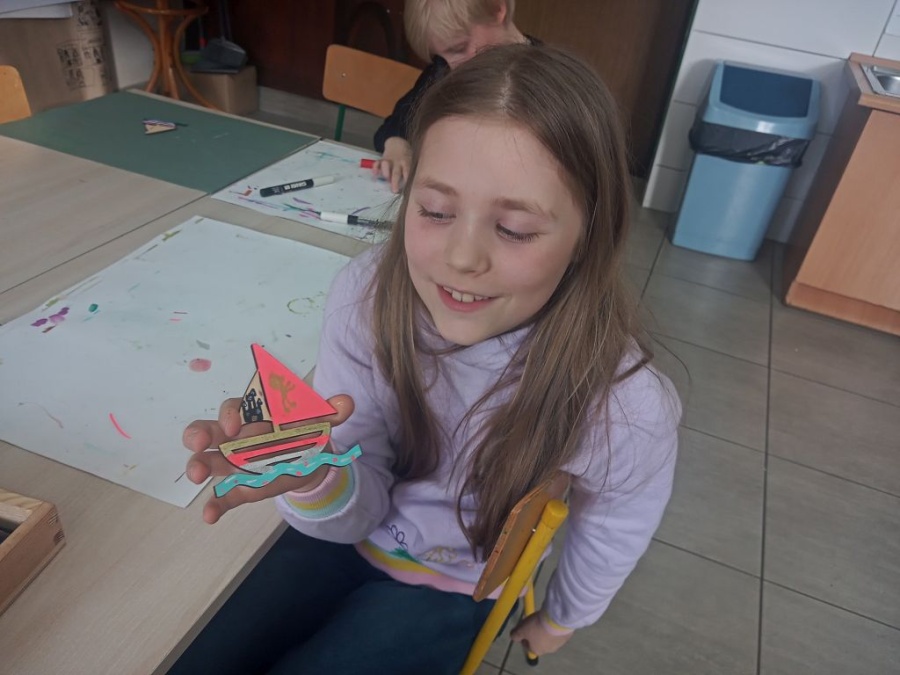 Baśń zainspirowała działania plastyczne. Jednak tym razem postanowiliśmy rozszerzyć swoją wiedzę u ekspertów, którzy działają w Pałacowej Pracowni Edukacji Morskiej. Jedna z grup Pracowni miała okazję poznać kapitana Jerzego Szwocha oraz kilku Uczestników PEM. Olga Kawiec zadawała w naszym imieniu wiele dociekliwych pytań. Dowiedziałyśmy się o poczuciu wolności jakiej można doświadczyć podczas rejsu.
