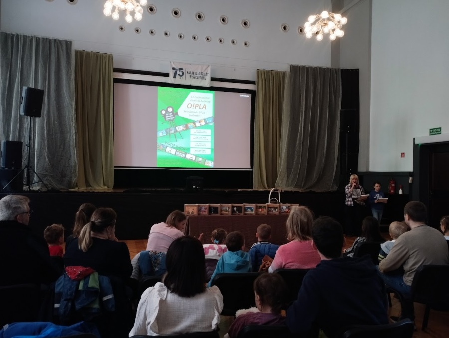 W sobotę, 26 kwietnia 2025 roku w auli oraz sali 106 Pałacu Młodzieży odbywały się projekcje w ramach 13 Festiwalu Animacji O!PLA. Prezentowaliśmy wszystkie programy w konkursach TERAZ DZIECI MAJĄ GŁOS! oraz TERAZ MY! we wszystkich kategoriach wiekowych. Pomimo wspaniałej pogody na projekcje dotarło ogółem 100 osób z widowni dziecięcej oraz młodzieżowej. Nasze pokazy z uwagą śledzili również opiekunowie: rodzice, nauczyciele, babcie, dziadkowie oraz ciocie i wujkowie! Serdecznie dziękujemy za poświęcenie swojego czasu! Serdecznie dziękujemy uczestnikom Pracowni Rytmiki Pani Barbary Marcinkowskiej – Boruszak za „podniesienie frekwencji” 🙂