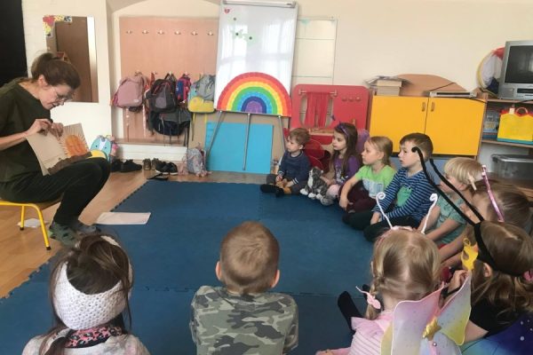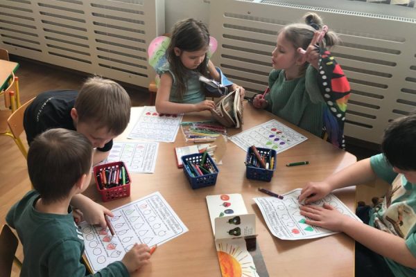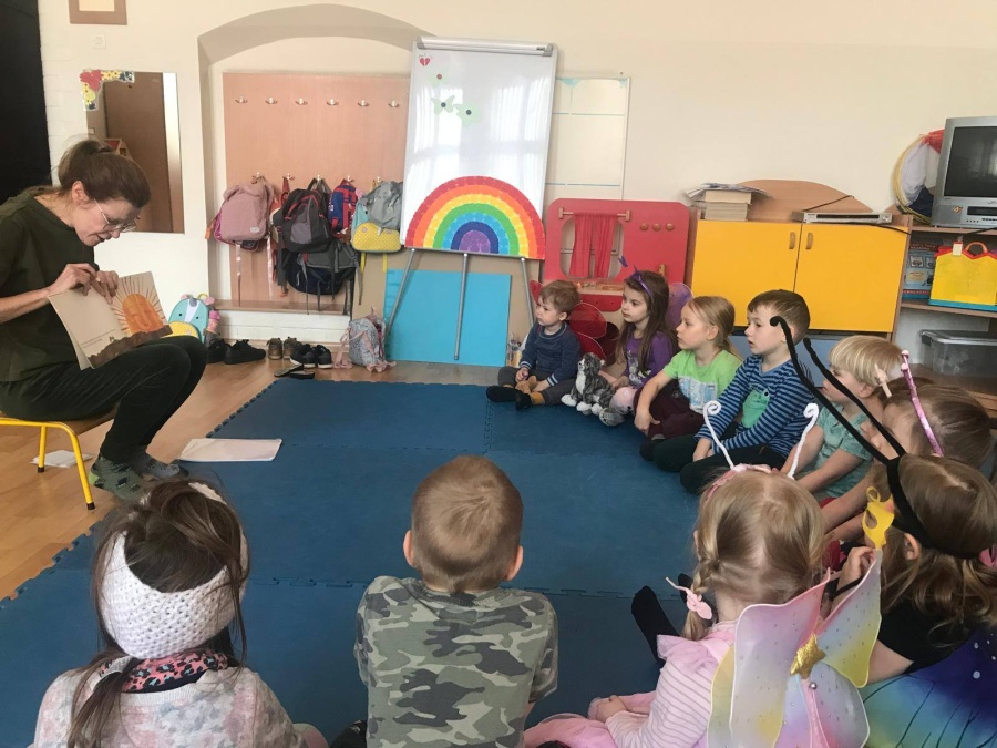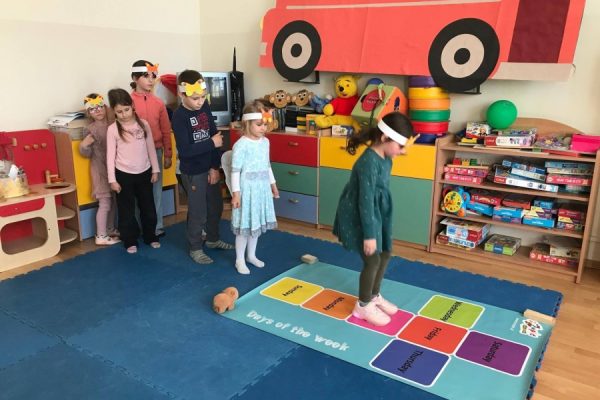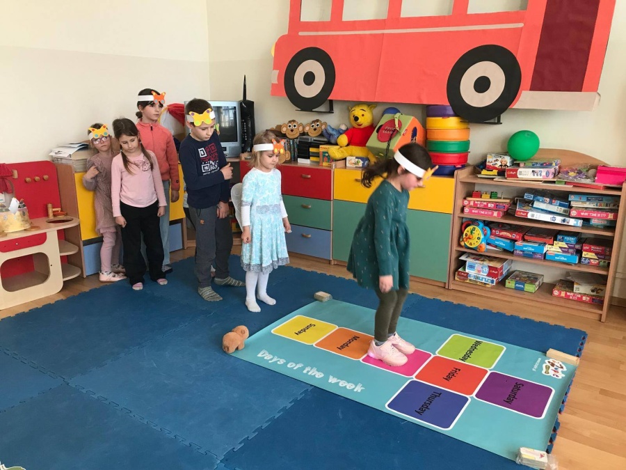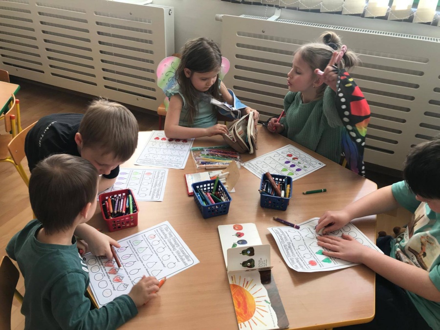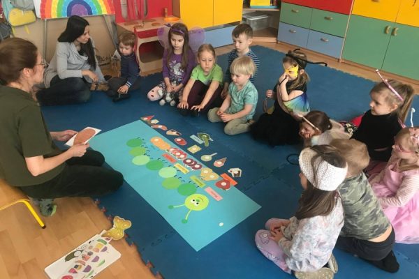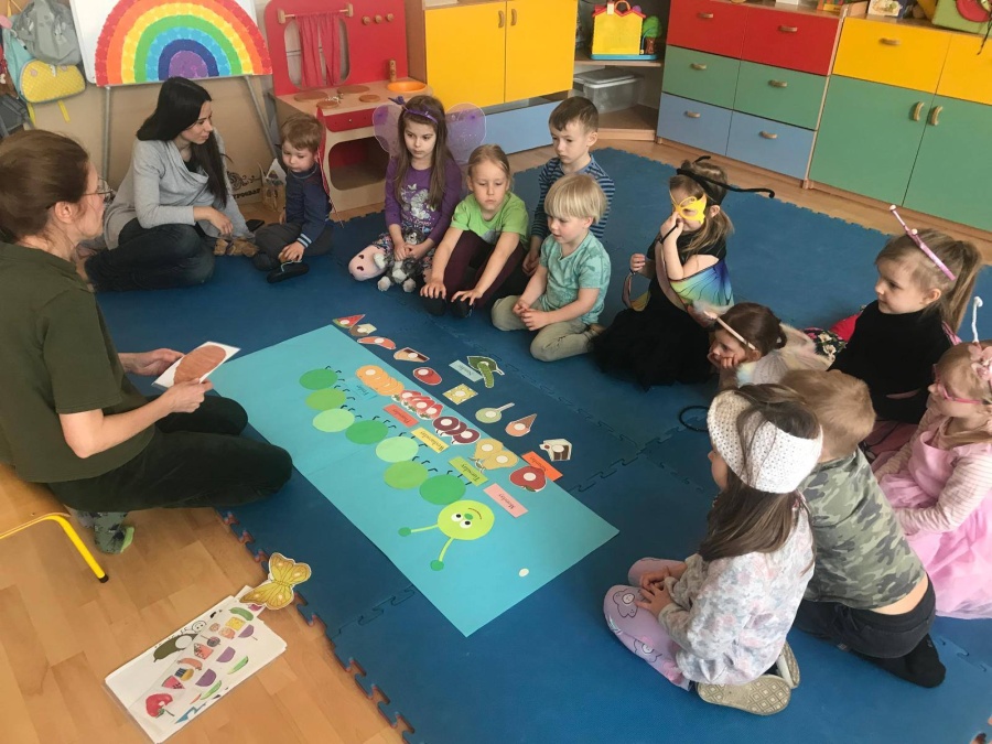 W ramach cyklicznej imprezy edukacyjnej pt.”English Stories”, w Pracowni z językiem angielskim przez świat, dzieci wysłuchały opowieści o bardzo głodnej gąsienicy. Prz tej okazji powtórzyły dni tygodnia, nazwy produktów spożywczych, były również gry i zabawy ruchowe.