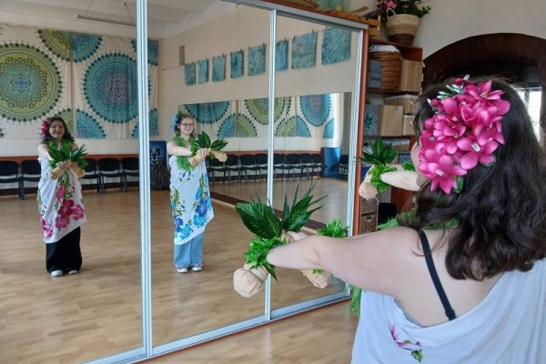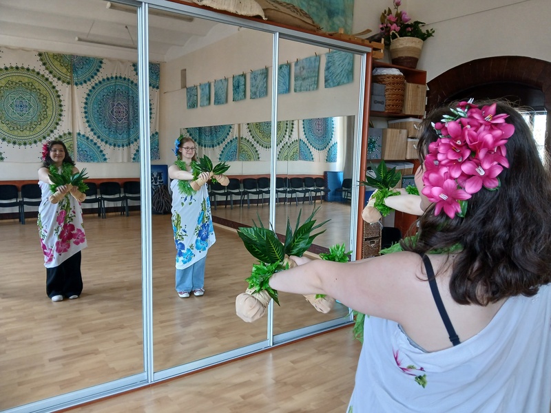 Sobotnie, Etniczne Warsztaty Twórcze Pracowni Tańca i Kultury Etnicznej pod kierunkiem p. Justyny Kozłowskiej były skupione na Hawajach. Powstały kolejne grzechotki do tańca hawajskiego hula. Dziewczęta malowały tkaniny wykorzystując hawajskie motywy liści i kwiatów. Stworzyły w ten sposób oryginalne parea do tańca.