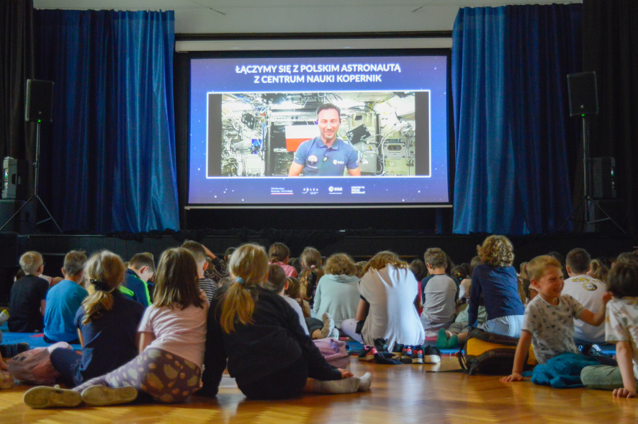 Podczas spotkania Sławosz Uznański-Wiśniewski odpowiadał na pytania dzieci zgromadzonych w Centrum Nauki Kopernik oraz przeprowadził zaproponowane przez nich eksperymenty prosto z Międzynarodowej Stacji Kosmicznej ISS!