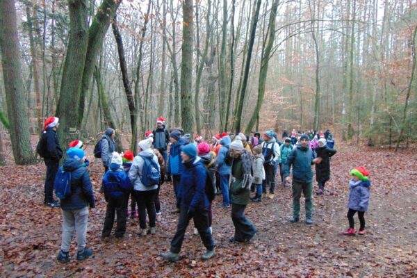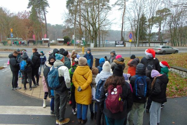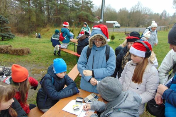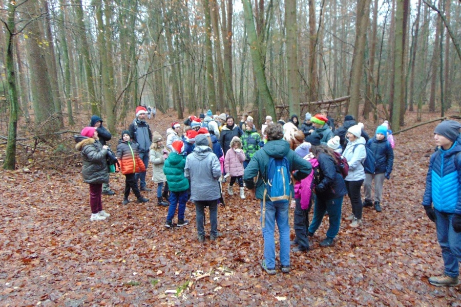 Rozpoczęła się ona na Głębokim, a miejscem złazu była Szczecińska Gubałówka. Wyruszyliśmy na szlak z nadzieją, że spotkamy gdzieś po drodze Mikołaja! Planując trasę rajdu myśleliśmy, że będzie typowo zimowa pogoda, ze śniegiem, że zobaczymy na nim ślady sań mikołajowych. Ale nic z tego! Wędrowaliśmy przez Puszczę Wkrzańską żółtym szlakiem im. Ireny i Karola. Mijaliśmy wiele ciekawych miejsc, niezwykłych drzew, przeskakiwaliśmy błotniste przeszkody. Krótki odpoczynek w miejscu nazywanym Dzicze Oko, gdzie przekroczyliśmy strumień Jasmundzką Strugę, pozwolił nam na regenerację sił. Do końca rajdu szliśmy w dobrych humorach. Po wejściu na Gubałówkę potwierdzaliśmy przejście trasy w książeczkach odznak turystycznych i po krótkim odpoczynku wyruszyliśmy do domu.