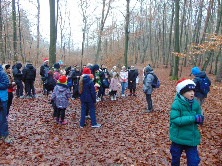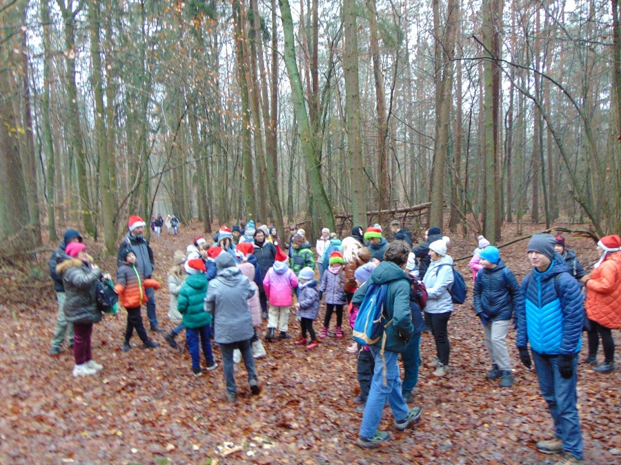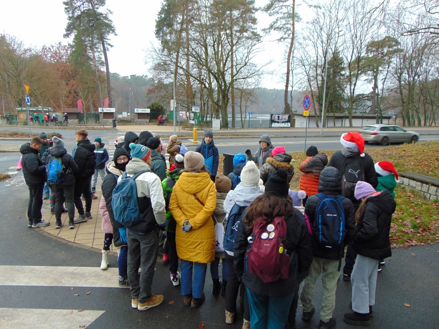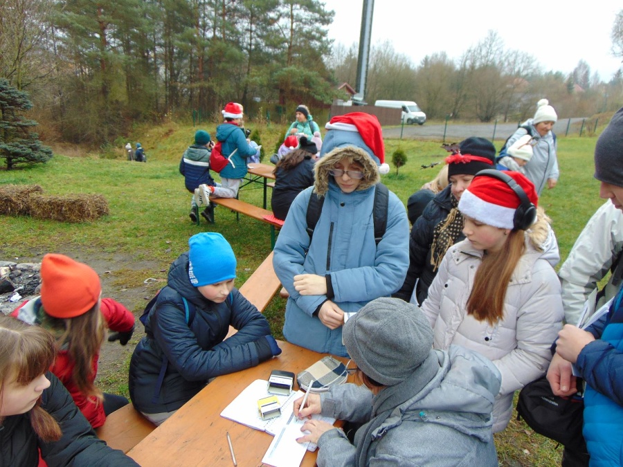 Rozpoczęła się ona na Głębokim, a miejscem złazu była Szczecińska Gubałówka. Wyruszyliśmy na szlak z nadzieją, że spotkamy gdzieś po drodze Mikołaja! Planując trasę rajdu myśleliśmy, że będzie typowo zimowa pogoda, ze śniegiem, że zobaczymy na nim ślady sań mikołajowych. Ale nic z tego! Wędrowaliśmy przez Puszczę Wkrzańską żółtym szlakiem im. Ireny i Karola. Mijaliśmy wiele ciekawych miejsc, niezwykłych drzew, przeskakiwaliśmy błotniste przeszkody. Krótki odpoczynek w miejscu nazywanym Dzicze Oko, gdzie przekroczyliśmy strumień Jasmundzką Strugę, pozwolił nam na regenerację sił. Do końca rajdu szliśmy w dobrych humorach. Po wejściu na Gubałówkę potwierdzaliśmy przejście trasy w książeczkach odznak turystycznych i po krótkim odpoczynku wyruszyliśmy do domu.