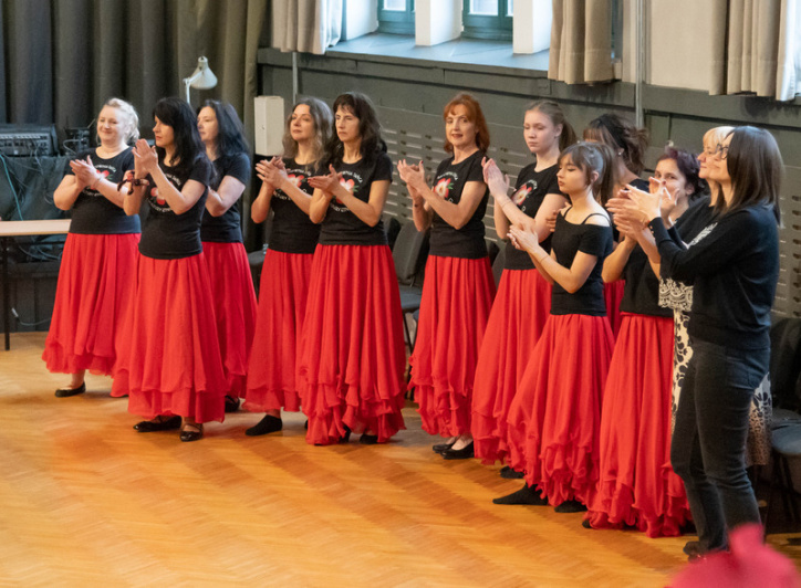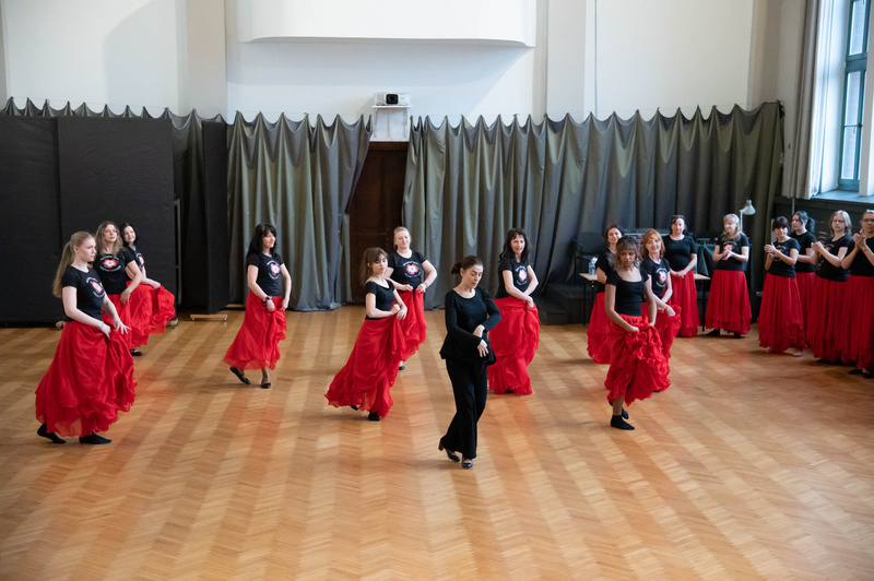 W trakcie warsztatów młodsze dziewczęta poznały colombianę z chustą, a grupa młodzieżowa i panie zatańczyły tangosa ze spódnicą.