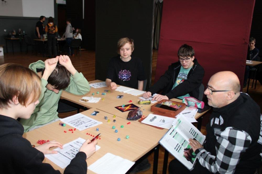 Odbyło się już tyle edycji „Kości”, że aż trudno napisać coś odkrywczego. Po raz kolejny nasi Mistrzowie nie zawiedli, prowadząc sesje zarówno dla młodszych i starszych graczek i graczy. Co cieszy najbardziej, pojawiają się wśród grupy uczestniczej nowe twarze, które z ciekawością dołączają do grona pasjonatów RPG. Mamy nadzieję, że ta tendencja będzie tylko rosła, a nasze wydarzenie „zarazi” kolejne pokolenia szczecinianek i szczecinian miłością do papierowych gier fabularnych.