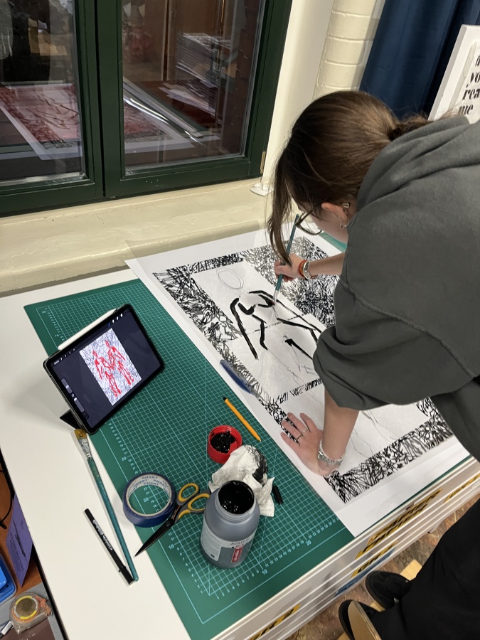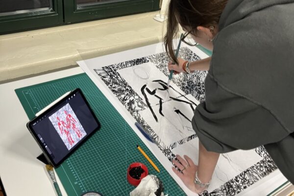 W Pracowni Grafiki osoby uczestniczące w zajęciach poznają techniki grafiki warsztatowej m.in. monotypię, linoryt czy sitodruk.