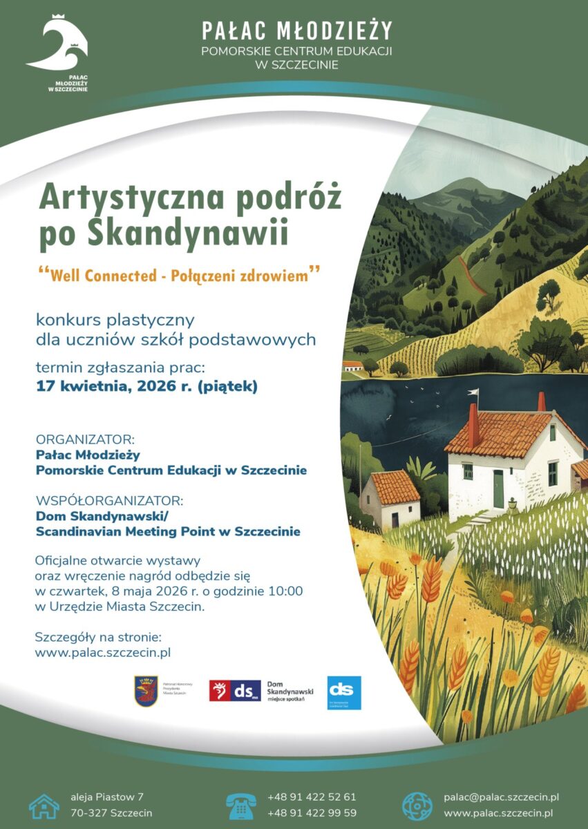 W ramach Dni Skandynawskich, które odbywają się w Szczecinie w dniach 6-10 maja, Pałac Młodzieży w Szczecinie oraz Dom Skandynawski/Scandinavian meeting point zapraszają uczniów szkół podstawowych do udziału w konkursie plastycznym pod hasłem tegorocznej edycji wydarzenia: „Well Connected – Połączeni zdrowiem”.