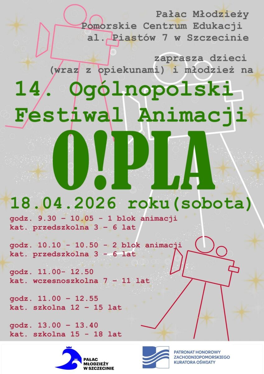 Miło nam poinformować, że szczecińskie projekcje w ramach O!PLA 2026 w Pałacu Młodzieży, otrzymały Honorowy Patronat Zachodniopomorskiego Kuratora Oświaty – Pawła Palczyńskiego.