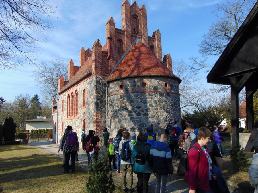Ci co przyszli na rajd pierwszy raz dowiedzieli się jak oznakowane są szlaki turystyczne. Kiedy na szlaku skręcamy przed znakiem, a kiedy za znakiem? Ruszając w dalszą drogę weszliśmy na czarny szlak i idąc za jego znakami, dotarliśmy do Pilchowa. Tam podziwialiśmy zabytkowy kościół p.w. Wniebowzięcia NMP, przy którym stoi zabytkowa, drewniana dzwonnica. Idąc dalej przeszliśmy obok terenu wodociągów miejskich z okazałym budynkiem stacji pomp i sporej plantacji borówki. Za plantacją była stadnina i konie. Po paru kilometrach dotarliśmy do leśniczówki Owczary.