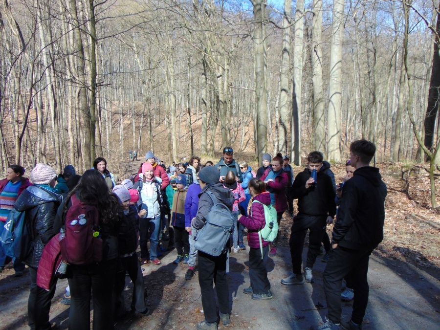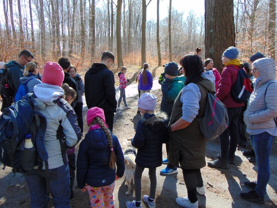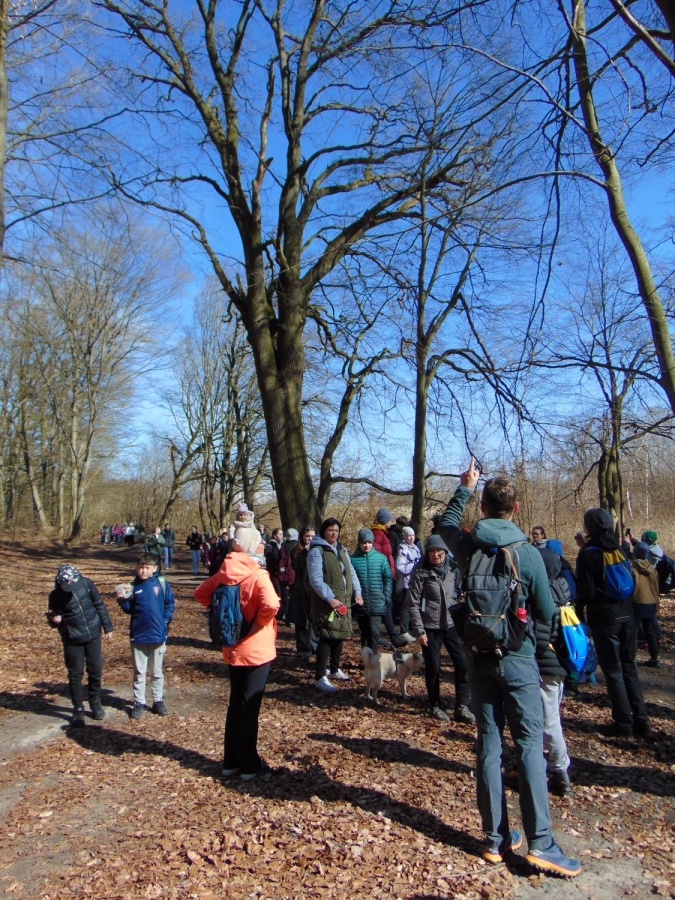 Już wiosenna, 1103 Leśna Sobota powitała nas piękną pogodą. Wędrówkę rozpoczęliśmy na pętli autobusowej w Śmierdnicy i tam też ją kończyliśmy. Mieliśmy do przejścia 7 km. W czasie wędrówki podziwialiśmy uroki Puszczy Bukowej. Trasa żółtym szlakiem była ciekawa i prowadziła nas do granicy rezerwatu przyrody Buczynowe Wąwozy. Po drodze, tuż za Śmierdnicą, minęliśmy pomnikowy dąb Jerzego. Przy rezerwacie skręciliśmy w lewo i Drogą Bieszczadzką dotarliśmy do czarnego szlaku. Tam na rozdrożu rośnie wysoka na prawie 30m, okazała pomnikowa daglezja. Czarnym szlakiem, mijając Sosnówko, doszliśmy do Śmierdnicy. Tu odpoczęliśmy i potwierdziliśmy trasy w książeczkach turystycznych.