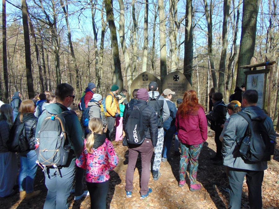 W sobotę 11 kwietnia, w przepiękną pogodę, spotkaliśmy się na pętli autobusowej Podbórz. Miejscem złazu 1104 Leśnej Soboty był Dąb Bogusława X w Puszczy Wkrzańskiej. Wędrówkę rozpoczęliśmy od obejrzenia pomnika upamiętniającego sportowców ze Związku Gimnastycznego i Sportowego Szczecin – Drzetowo, poległych w I wojnie światowej. Potem czerwonym szlakiem szliśmy doliną Bystrego Potoku, wzdłuż którego rosną okazałe egzemplarze buków oraz dębów.