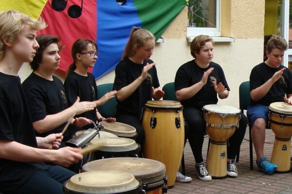 Poprzez występy publiczne uczniowie mają okazję zaprezentowania swoich umiejętności, co pozwala im wyzwolić pozytywne myślenie o swoich możliwościach – zwiększa to ich samoocenę. Grając w grupie, uczą się empatii, słuchania własnego pierwotnego rytmu, rozluźniania mięśni – wszystko to oznacza relaks i dobre samopoczucie tak cenne w obecnych czasach.