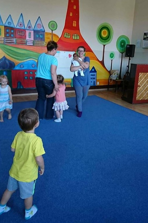 W maju urodził się najnowszy członek naszej grupy”Fiołki”-2 latki! Maleńka Róża Barbara, na zdjęciu z p. Basią. Ma 2 tygodnie.