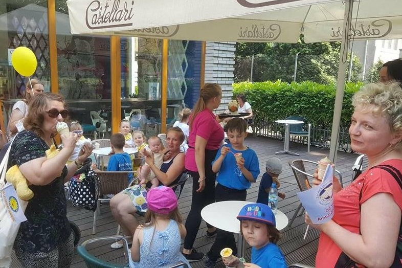 Dzieci z rodzicami z Piccoli Voci na lodach ufundowanych w nagrodę przez p. Basię Marcinkowską.