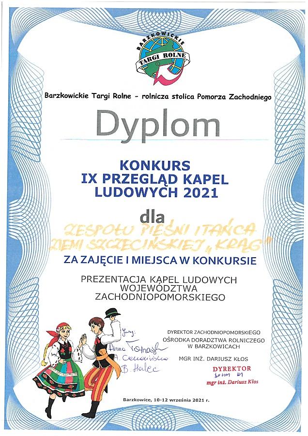 „Krąg” ubarwił wojewódzkie święto plonów, które w tym roku zorganizowane zostało przez Ogrody Przelewice, wziął udział i zarazem zdobył I miejsce na IX Przeglądzie Kapel Ludowych zorganizowanym przez Zachodniopomorski Ośrodek Doradztwa Rolniczego w Barzkowicach.