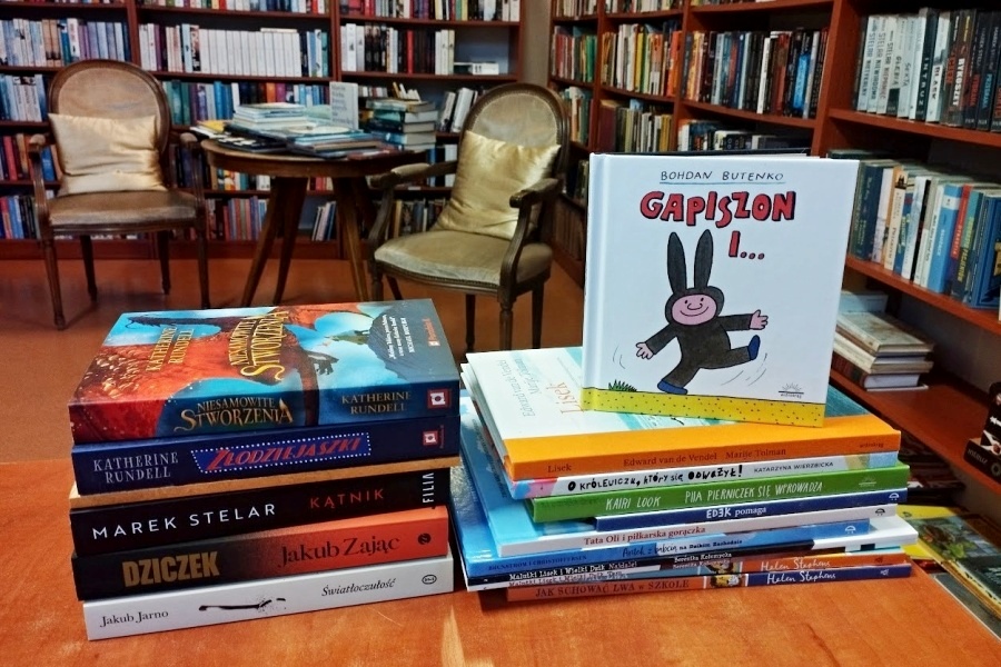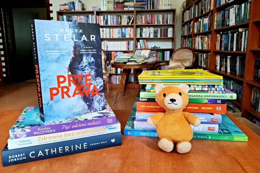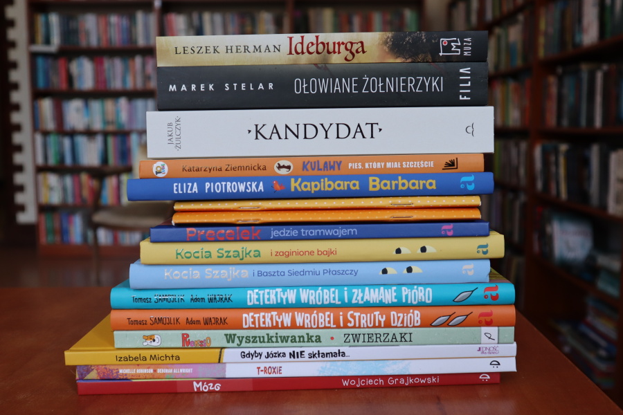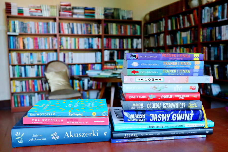 Na półkach znajdują się książki dla dorosłych i dla dzieci, w tym wiele nowości dla najmłodszych oraz lektury dla uczniów szkół podstawowych i średnich. Dzięki wsparciu Rady Rodziców systematycznie uzupełniamy nasze zbiory.