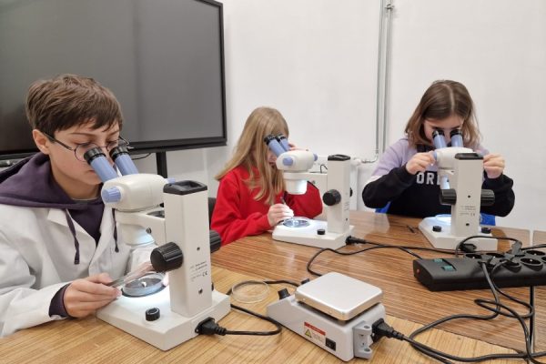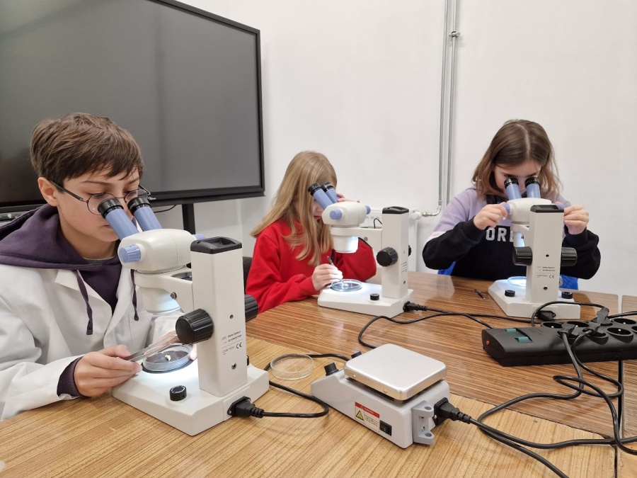 W naszej pracowni, którą zamieniliśmy w laboratorium naukowe „młodzi naukowcy” poznają świat przyrody stosując metody badawcze, a więc tak, jak to robią prawdziwi naukowcy. Przeprowadzamy zajęcia w formie obserwacji, eksperymentów i doświadczeń. Zajmujemy się przyrodą nieożywioną, przyrodą na poziomie związków organicznych, komórki i tkanki, aż wreszcie zajmiemy się poznawaniem prawdziwych organizmów.