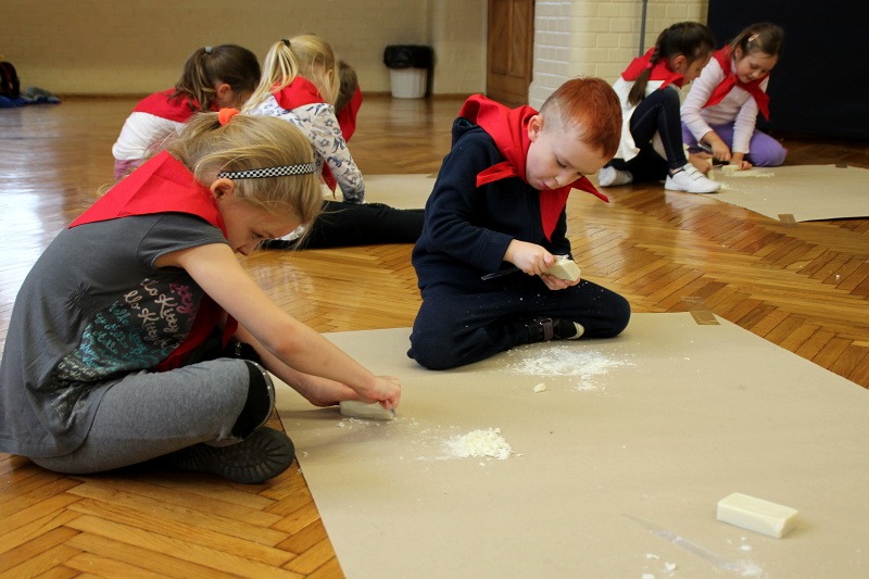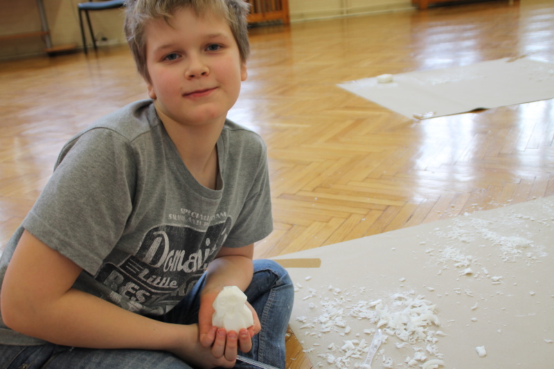 Warsztaty, w trakcie których uczestnicy poznają podstawy rzeźbienia. Przy dobrej zabawie zmierzą się z tym niełatwym rzemiosłem. Te zajęcia to szkoła cierpliwości, kreatywności i wytrwałości. Przy pomocy szarego mydła i plastikowego noża uczestnicy wyczarują wyjątkowe figurki.